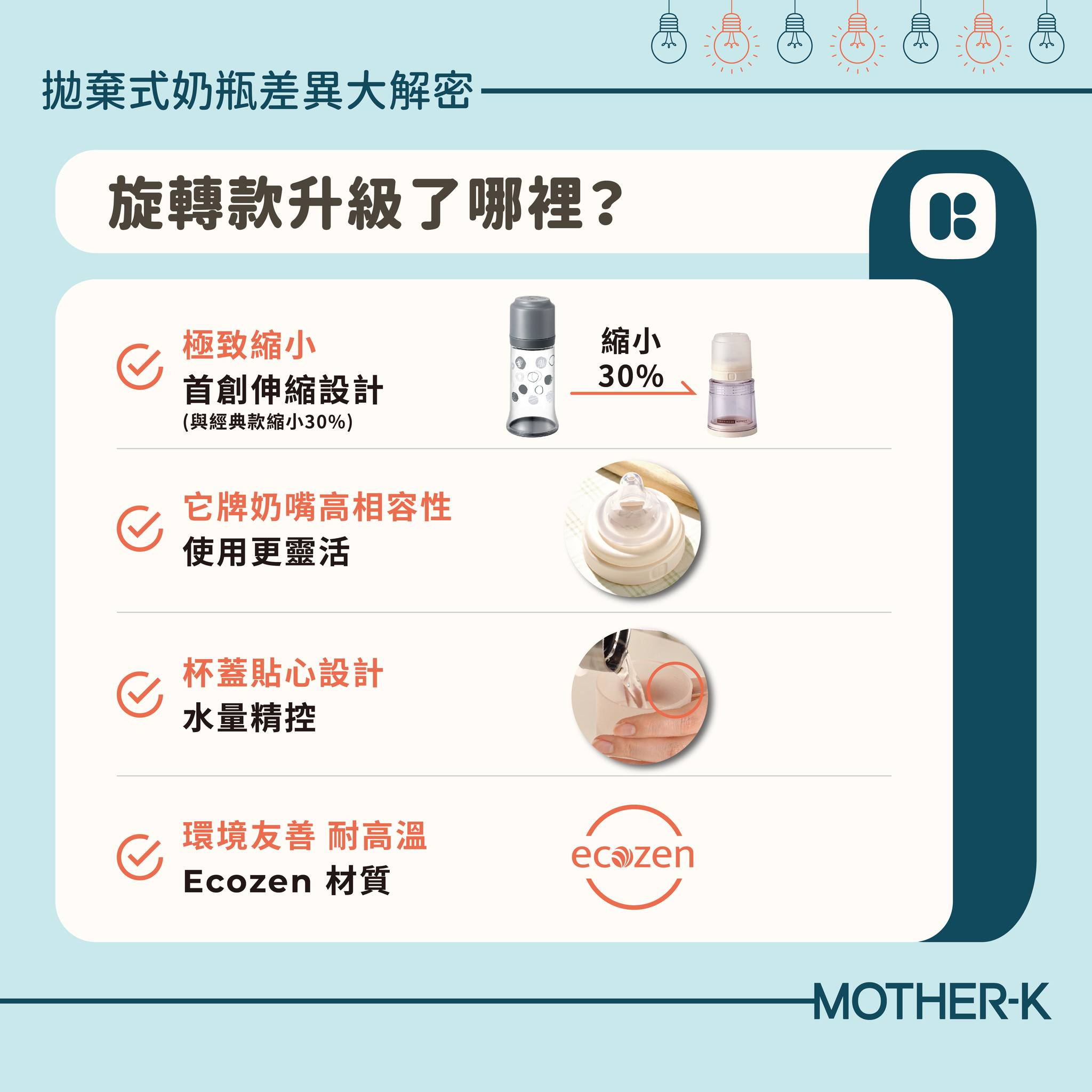 韓國MOTHER-K Ecozen 旋轉伸縮拋棄式奶瓶 溫感雙鎖拋棄式奶瓶袋組合 奶粉袋 奶瓶 拋棄式奶瓶